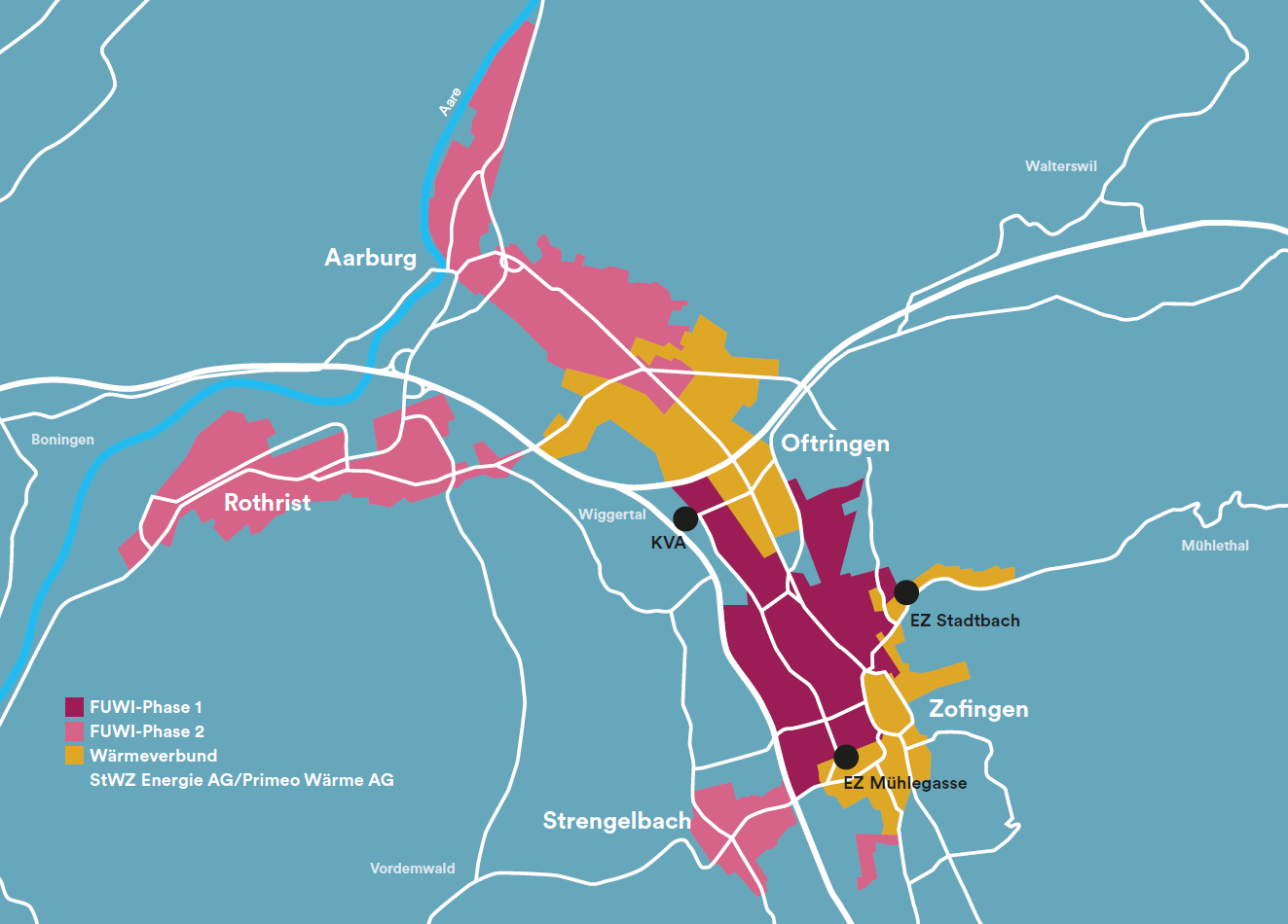 Gemeinsame erneuerbare leitungsgebundene Wärmeversorgung in den Gemeinden Aarburg, Oftringen, Rothrist, Strengelbach und Zofingen
