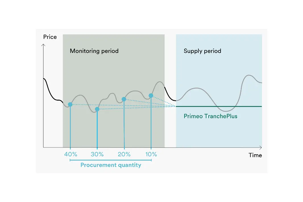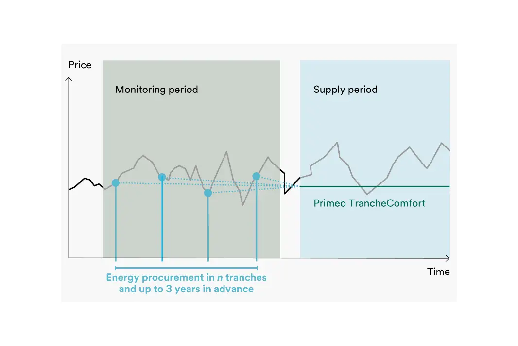 With Primeo TranchenComfort we distribute procurement over several predefined key dates - up to three years in advance. In total, up to 11 tranches are procured, the last one in the third quarter of the procurement period.