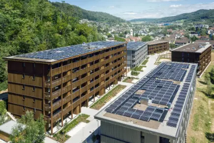 Weidmatt Lausen mit Immobilienentwicklerin & TU: LOSINGER MARAZZI AG (120 Mieteinheiten, 3 PVA mit jeweils 100 kWp und Batteriespeicher, Ladestationen in der Tiefgarage & E-Car-Sharing)