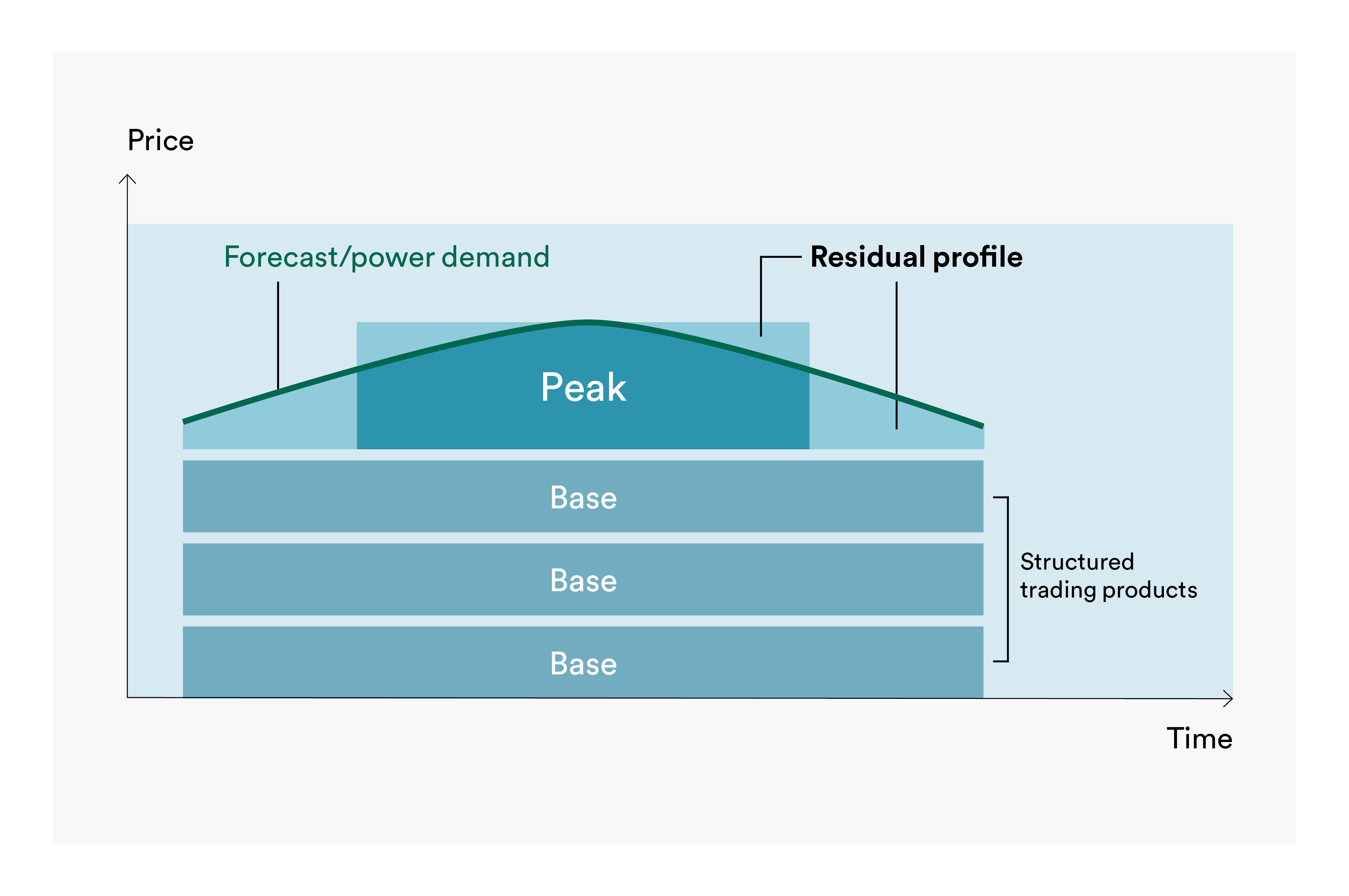 At Primeo StructurePlus, we cover your electricity requirements with trading products (base, peak and residual profile) on the Swiss wholesale market. Together with our experts, you develop a procurement schedule according to which we purchase the trading products in tranches and close to the market.