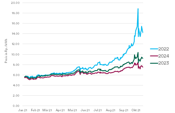 In recent weeks and months, market prices have been going upwards consistently. Companies that have not yet secured their electricity supply for 2022 are coming under increasing pressure.