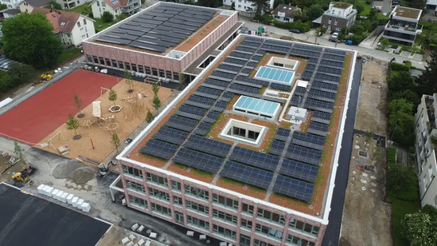 Become part of the energy revolution and symbolically obtain electricity from the photovoltaic system of the Surbaum school building in Reinach with Primeo Grün+. This project was developed in collaboration with the energy city of Reinach, which provides the roof and thus enables the production of local solar power.