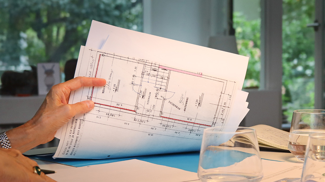 Rund zwei Stunden lang geht Peter Räber mit dem Ehepaar Klemme durchs Haus, um die Liegenschaft und die Haustechnik zu prüfen. Sie studieren Gebäudepläne und Energieverbrauchsdaten, notieren Eckdaten für die neue Photovoltaikanlage. Ausserdem inspizieren sie die bestehende Heizung für die Raumwärme und das Warmwasser sowie die elektrischen Leitungen für eine potenzielle E-Ladestation. Schliesslich lässt Räber noch eine Drohne über das Flachdach fliegen. So prüft er, wo und wie die Installateure eine Solaranlage optimal installieren können.