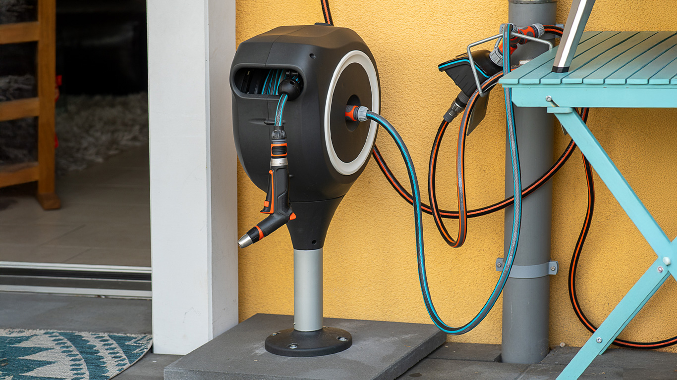 Im neuen Garten war das grösste Ärgernis anfangs der endlose Gartenschlauchsalat. Unser L-förmig angelegter Garten verlangt nach 35 Metern Schlauch – eine echte Herausforderung für Ordnungsliebende. Die Gardena-Schlauchbox schafft Abhilfe: Schlauch herausziehen, nutzen, automatisch wieder aufrollen – fertig. Seitdem bleibt alles ordentlich verstaut. Unsere Box steht auf einem Standfuss, im Primeo Energiewende-Shop gibt es sie auch für die Wandmontage.