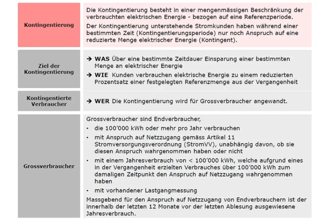All major consumers must save a certain amount of electricity. Major consumers are those with annual consumption of more than 100,000 kWh (according to Art. 11 of the Electricity Supply Ordinance).