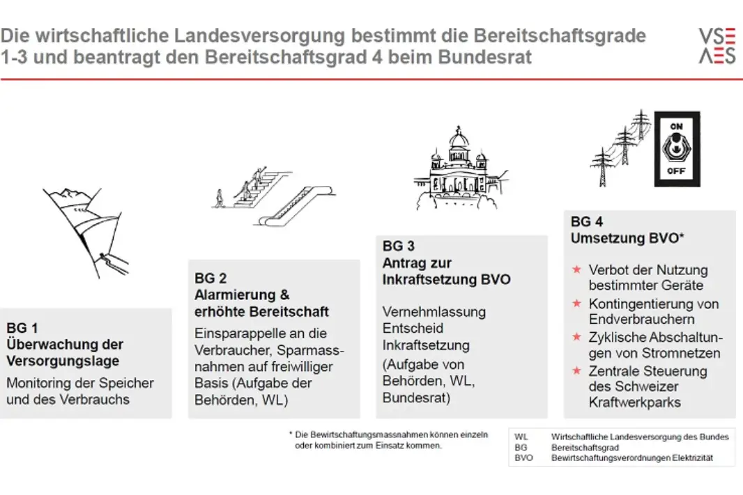 These are aimed at the population, do not need an ordinance, and call for voluntarily compliance. The calls for saving electricity are shown here. Measures if an ordinance is in effect: