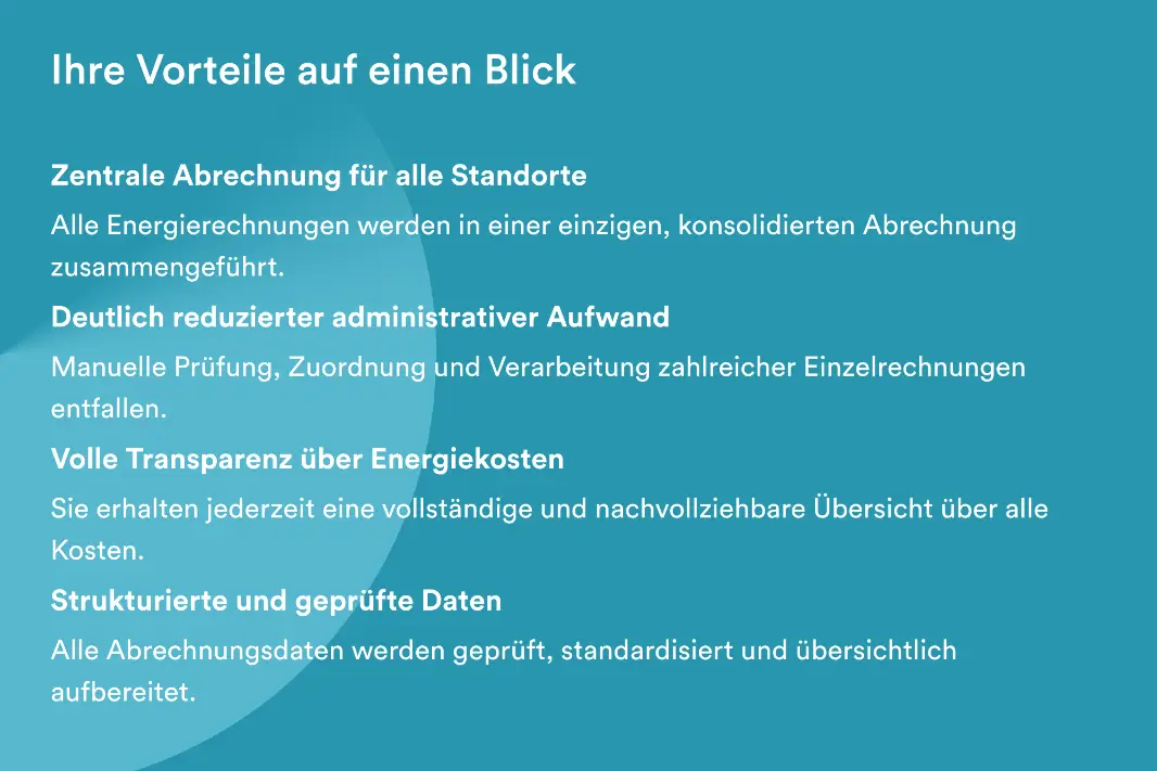 Besonders für Immobilienportfolios und Facility-Management-Strukturen bietet die konsolidierte Energieabrechnung eine fundierte Grundlage für Budgetierung, Planung und Reporting.