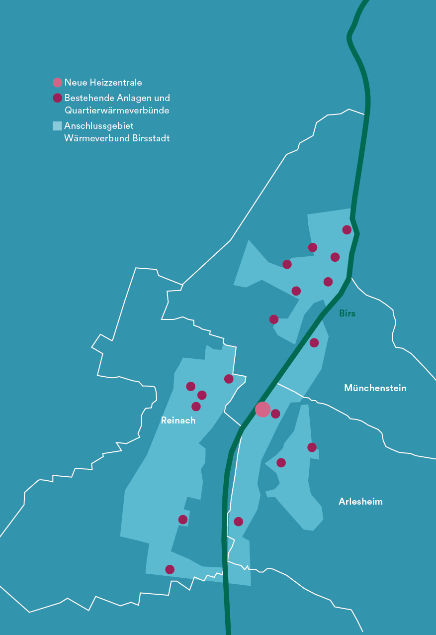 25 bestehende Wärmeanlagen und -verbünde wachsen zusammen und werden auf erneuerbare Energien umgestellt. Herzstück bildet eine neue Energiezentrale auf dem Areal von uptownBasel, welche Abwärme und Biomasse für die Produktion von Wärme nutzt. Damit entsteht nahe Basel der «Wärmeverbund Birsstadt» - ein Grossprojekt von Primeo Energie.
